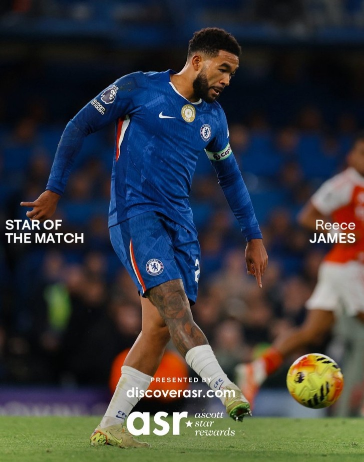 本场比赛切尔西队长里斯-詹姆斯打满全场,送出一次助攻,赛后当选切尔西官方评比出的本场队内最好球员。