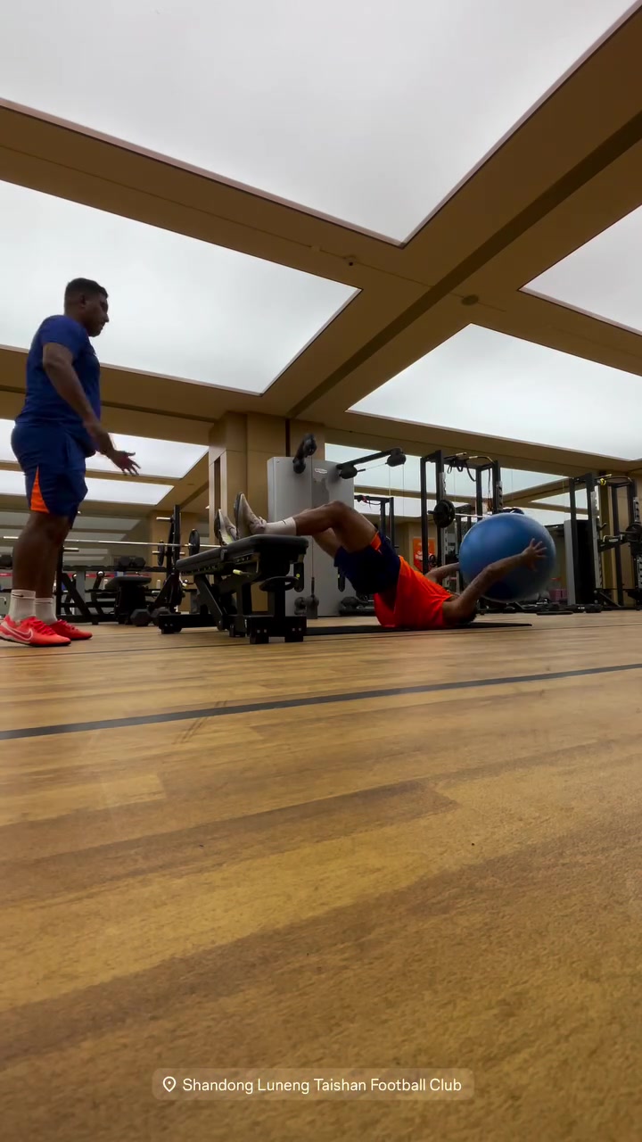 8月12日讯 泰山外助克雷桑更新社媒,晒出他在健身房进行磨砺的视频。