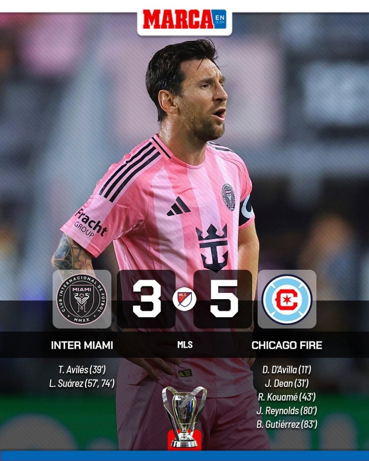 迈阿密海外冲冠阶段两轮不堪,1-1多伦多FC,3-5芝加哥火焰。