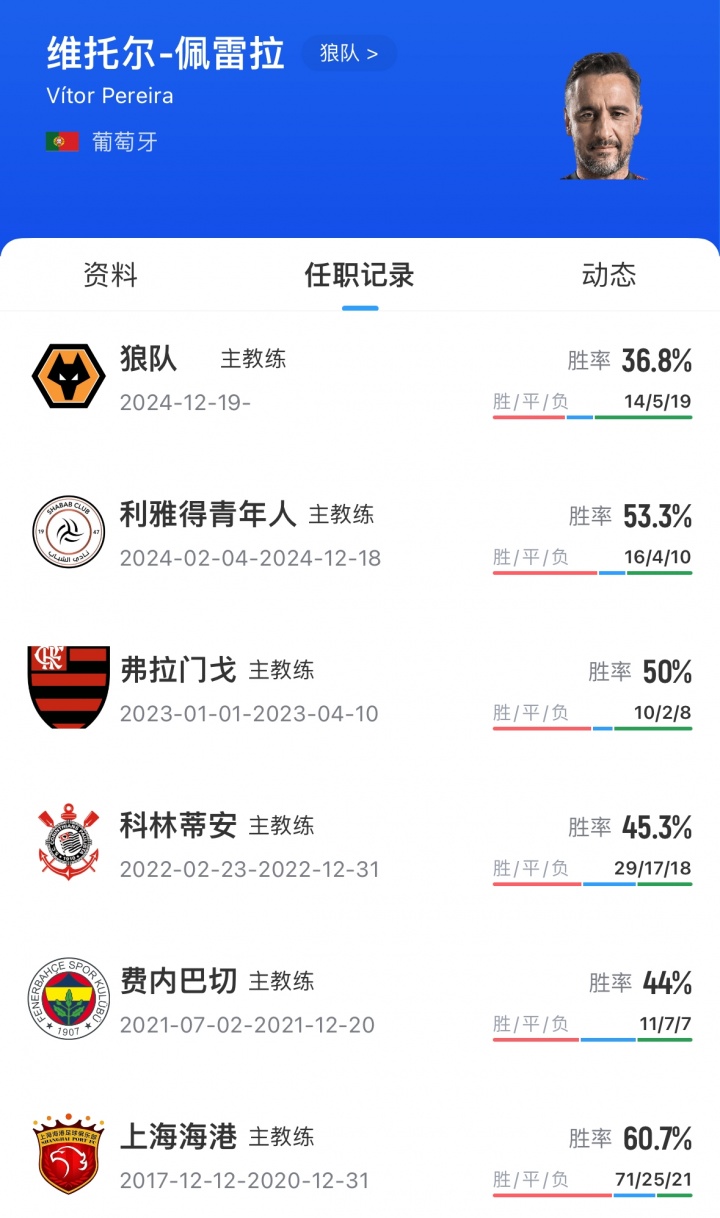 佩雷拉于前年12月上任狼队主帅,上赛季匡助球队完成保级。本年9月中旬,在英超开局4连败的情况下,他与狼队续约三年。