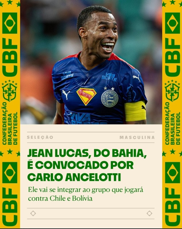 8月28日讯 巴西国度队官方告示,由于纽卡中场乔林顿在最近的一场英超比赛中受伤,补招巴伊亚的让-卢卡斯(Jean Lucas)。此外,弗拉门戈左后卫阿莱士-桑德罗一样因伤退出洋家队,但他们不会补招球员。