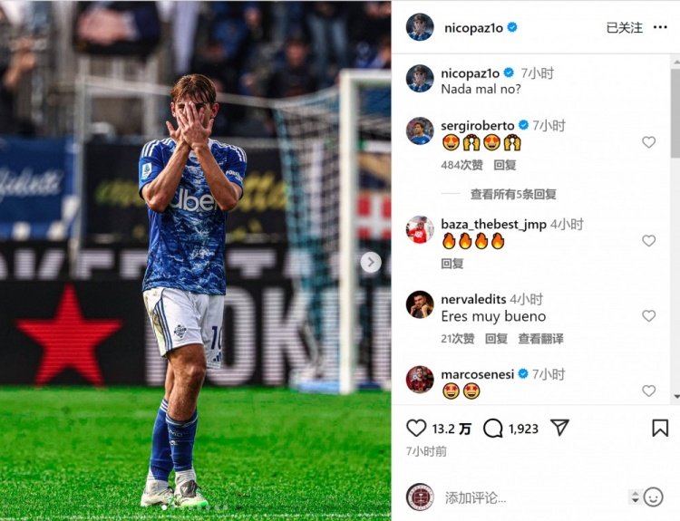此役尼科-帕斯传射立功,匡助科莫取胜,赛后他在外交媒体上晒出记号性庆祝看成,配文:“还不赖吧?”