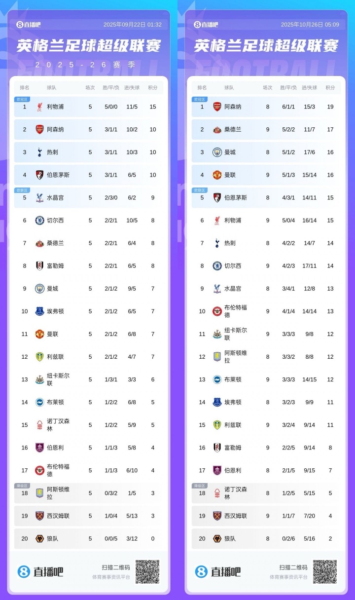 此外,5轮时利物浦还朝上曼联8分,现曼联还是反超赤军1分。