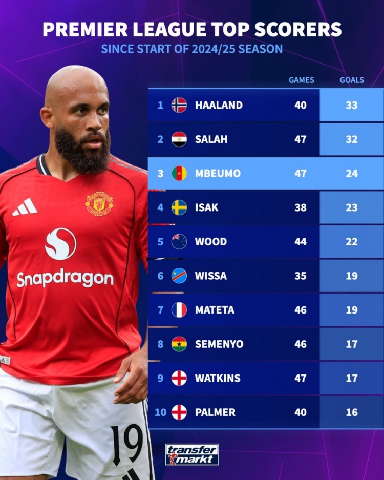 10月31日讯 《转会市集》统计了上赛季于今的英超弓手榜,哈兰德也曾反超萨拉赫居首。