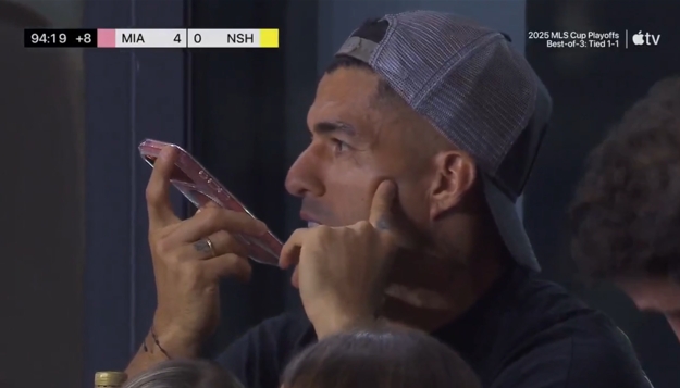 > 看比赛太安适了!迈阿密4球卓绝,苏亚雷斯场边拿入辖下手机聊天