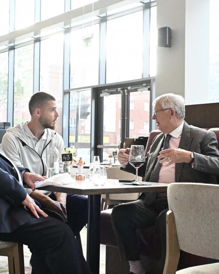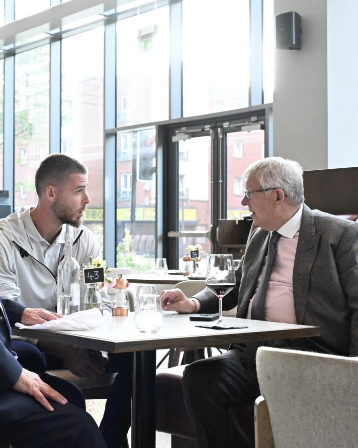 赛前,弗格森与德赫亚共进晚餐,两东说念主满脸笑脸拥抱热聊。