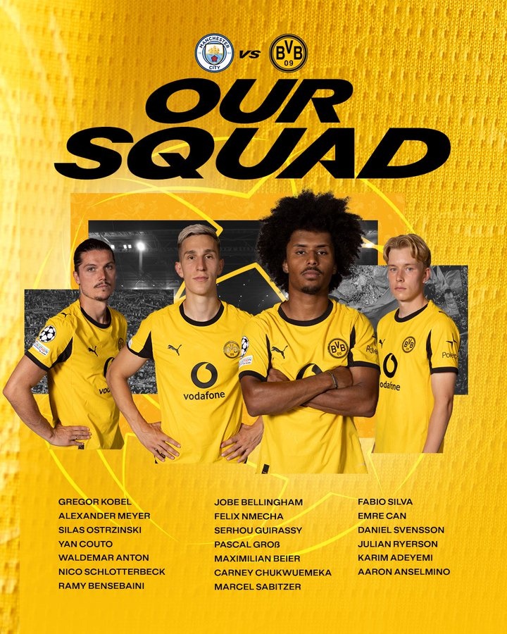 11月5日讯 北京时分本周四凌晨4点,欧冠联赛阶段第4轮,多特将客战曼城,多特当天公布了球队此役大名单。