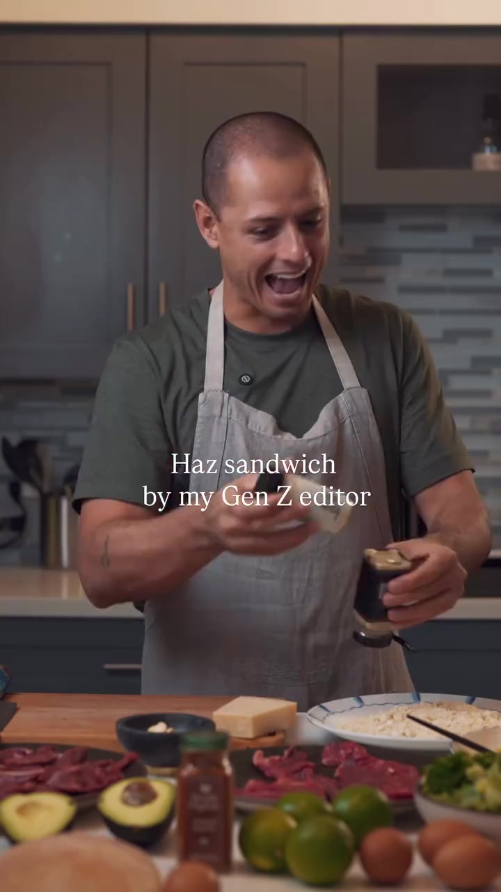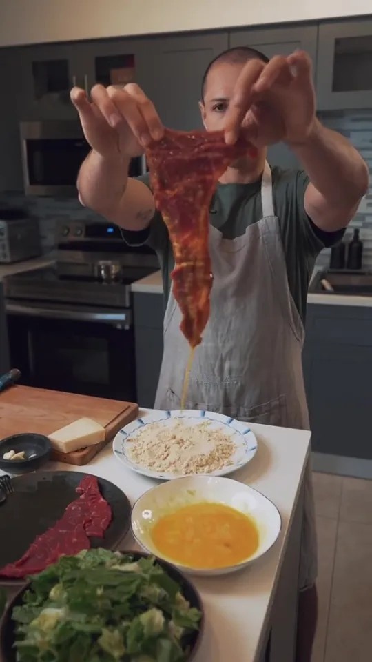 小豌豆在自己的TikTok频道上展示了自己制作的米兰风味三明治,包括煎牛肉、奶酪和牛油果,并自制了青酱,所有食材都放在烤过的夏巴塔面包上。