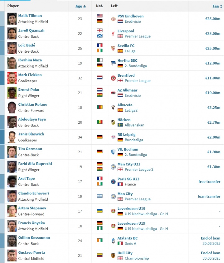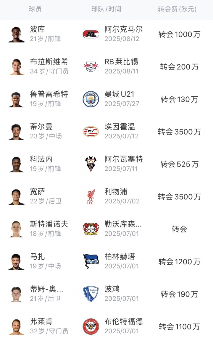 勒沃库森的17位新援所有破耗了1.41亿欧,而他们夏窗卖东谈主一经赚了近2.3亿欧。他们将在本周六晚迎来德甲首轮的比赛,届时,滕哈赫的球队会有何如的发达?