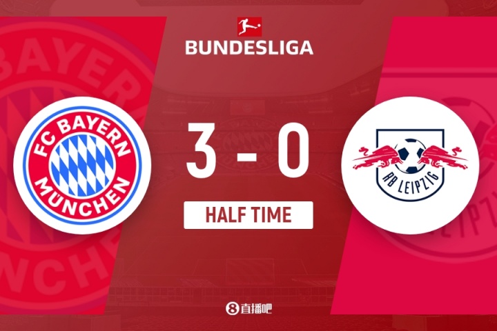 上半场伤停补时4分钟,半场戒指,拜仁暂3-0莱比锡。