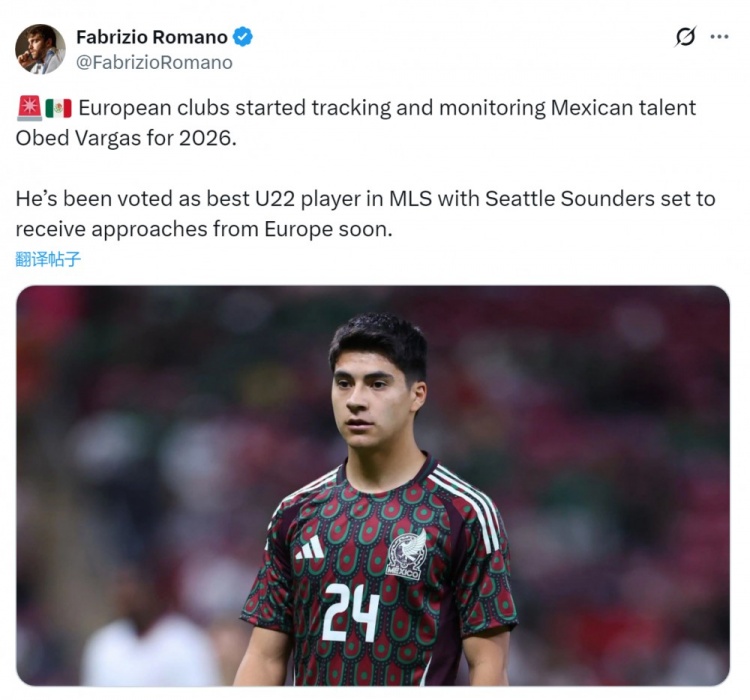 罗马诺流露,着力于西雅图海湾东谈主的奥贝-巴尔加斯受到外界的怜惜,欧洲俱乐部驱动跟踪测验他的推崇,将其列为2026年的潜在引援盘算。