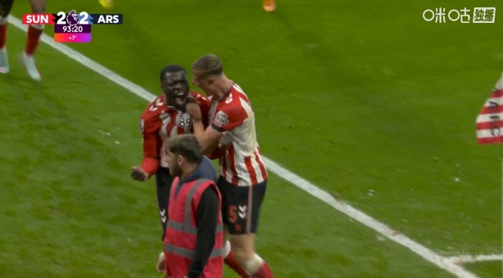 11月09日讯 英超第11轮,阿森纳客战桑德兰。补时第94分钟,布罗比侧勾破门,拉亚出击未扑到,桑德兰2-2阿森纳!
